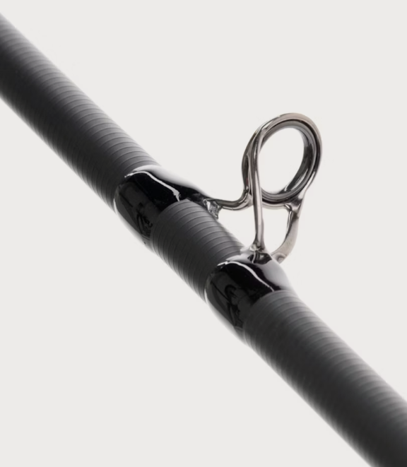 The blanks are unpolished, which not only creates a high-tech visual effect but also reduces swing weight and enhances the crisp feel of the rod when casting. From an environmental perspective, this is also beneficial, as no carbon dust is produced during manufacturing. All Rivolt rods come in four pieces and are supplied with a rod tube and a rod bag made from recycled materials.